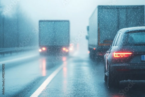 Rainy Highway Commute. Generative AI
