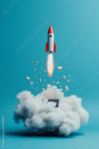 Rakete startet von Laptop