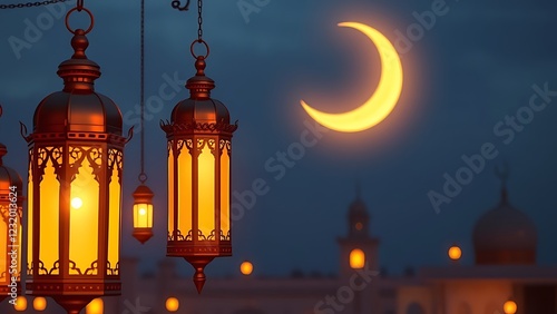 ramadan background lanterns, crescent moon