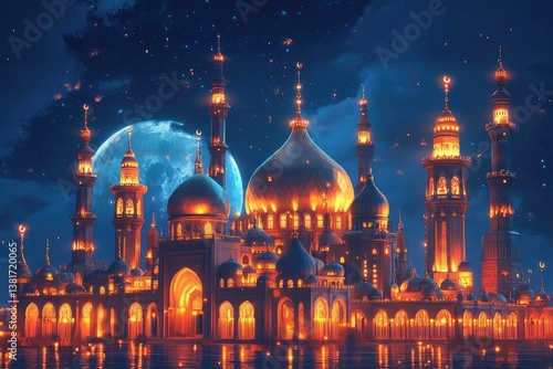 Ramadan Kareem concept created with AI generative tools. AI generated illustration.
