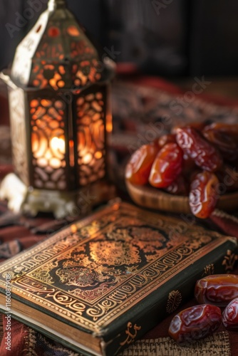 Ramadan Kareem: Illuminated Quran, Dates, and Lantern Setting