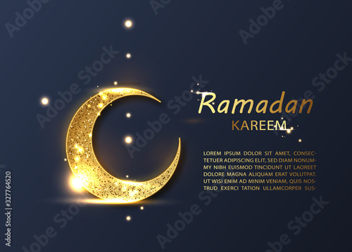 Ramadan kareem with golden crescent. Greeting card islamic celebration luxury template vector background