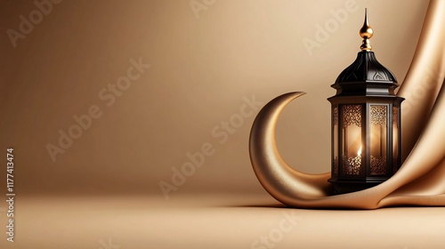 Ramadan Lantern and Crescent Moon: A Festive Islamic Celebration