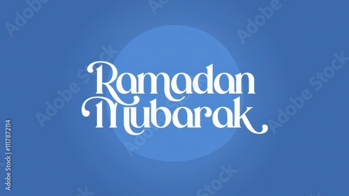 Ramadan Mubarak Typography Design with Islamic Calligraphy Crescent Moon Lanterns and Stars on a Festive Background for Celebrating the Holy Month of Ramadan Fasting, Prayer, and Eid al-Fitr Festival