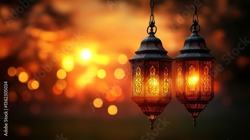Ramadan Sunset: Twin Lanterns Illuminate the Golden Hour