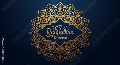 Ramadhan Kareem Golden Mandala Design on Dark Blue Background