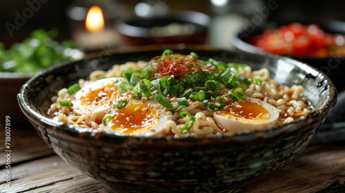 Ramen in a bowl well decorated, product photo