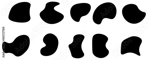 Random abstract liquid organic black irregular blotch shapes flat style design fluid vector illustration set suit for cover, card, flyer, isolated on white background