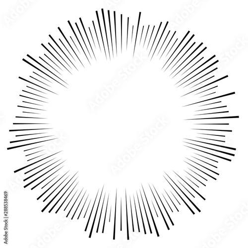Random circular lines starburst, sunburst. Converging radial, radiating stripes, spokes. Concentric rays, beams. Fireworks, explosion, sparkle trail lines