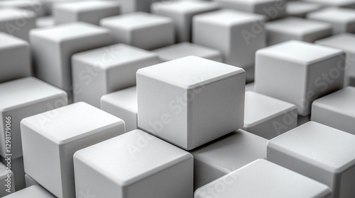 Randomly arranged white cube boxes fading out on a modern background symbolizing abstraction transition emptiness and minimalism with copy space for creative design.