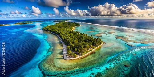 Rangiroa Atoll Aerial View: Vintage Grunge French Polynesia Paradise