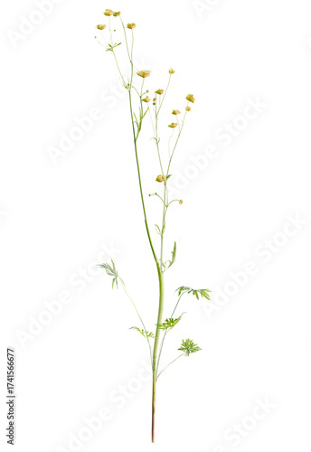 Ranunculus tree cutout, front view, transparent background, isolate, Delicate yellow wildflowers bloom on slender stems, evoking natural beauty.
