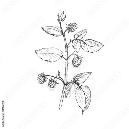 rarpberry tree branch with leaves and berries