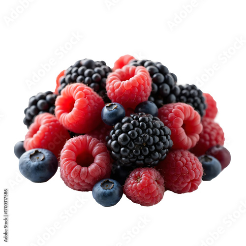 raspberries and blackberries on white png transparent background with HD quality