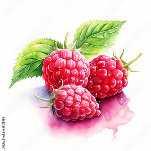 Raspberries in the shape of a heart with leaf isolated on a white background. Watercolour illustration.