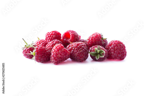 Raspberries isolated on white background. Raspberry closeup. Vegetarian or healthy eating. Juicy and delicious raspberries. Background of raspberries. Background of red berries. Red raspberries.