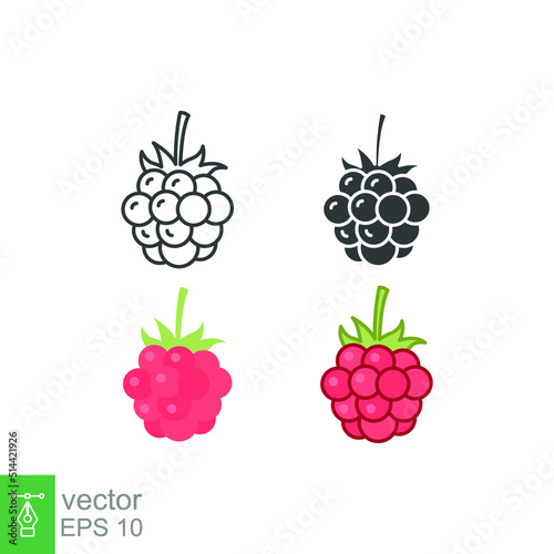 Raspberry icon. Simple outline, solid, flat style. Berry, pictogram, ripe, pink, sweet, delicious, food, nature, vegetarian concept. Vector design illustration isolated on white background. EPS 10