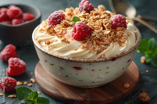 Raspberry Yogurt Parfait with Granola and Fresh Mint for Healthy Breakfast Inspiration