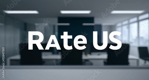 Rate Us lettering on blur corporate office background