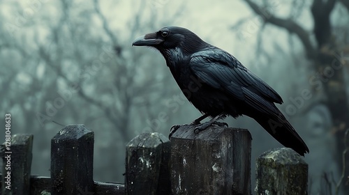 Raven on Foggy Wooden Fence