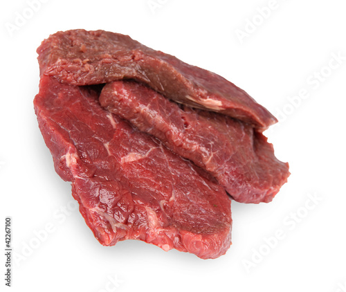 Raw beef steak over white