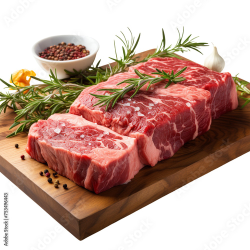 raw beef steak with rosemary