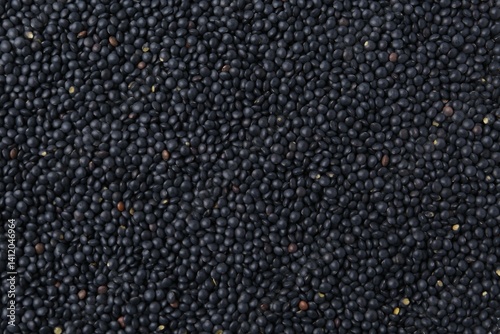 Raw black lentils as background, closeup view