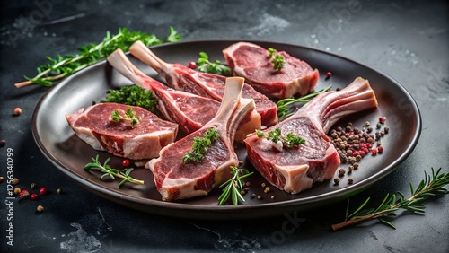 Raw Lamb Chops on Dark Plate with Black Background – Gourmet Culinary Photography