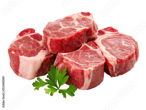 raw meat isolated on white, stack of meat