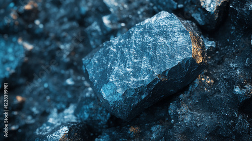 Raw metallic lithium ore with rugged reflective surfaces symbolizing energy innovation and the future of technology minimalist bright tones with blurred empty space for caption