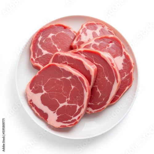 Raw mutton slices on white plate meat
