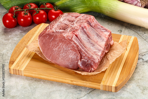 Raw pork loin cut with bone