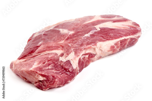 Raw pork neck (collar, Boston butt, shoulder), isolated on white background.
