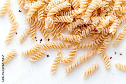 Raw Rotini Pasta on White Background