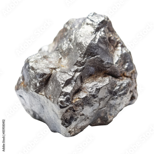 Raw silver ore rock specimen showcasing its natural, shiny surface and solid texture. Ideal for geological study and mineral collection. Isolated on transparent background, png.