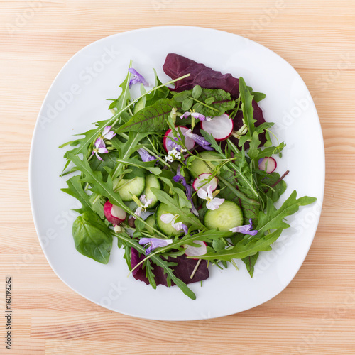 raw vegetables / Salad with different leaves, vegetables and flowers