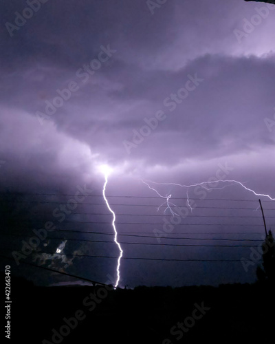 Rayos en tormenta eléctrica en la ciudad.
