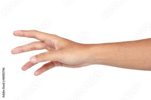 Reaching hand gesture, isolated in white background