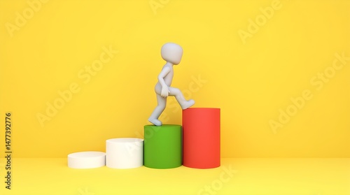 Reaching New Heights A 3D Cartoon Illustration of Progression