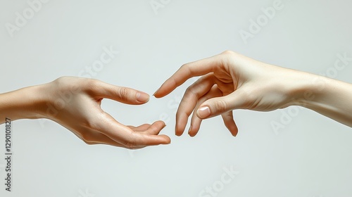 reaching out in faith the divine touch two hands reaching for each other on a white background conceptual image