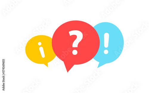 Reaction flat icon. Question mark, speech bubble, exclamation mark,help,bewilderment, reaction, internet, attitude, perception, media, color.Social network concept.Vector flat icon on white background