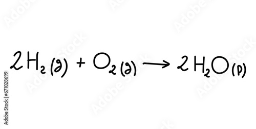 Reaction of hydrogen with oxygen equation. Hydrogen and oxygen to water. Mathematics resources for teachers and students. Scientific doodle handwriting concept.