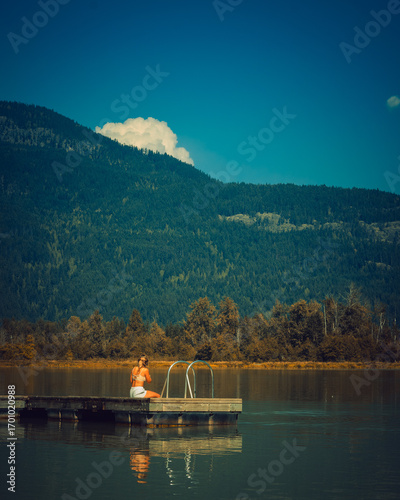reading book on the lake