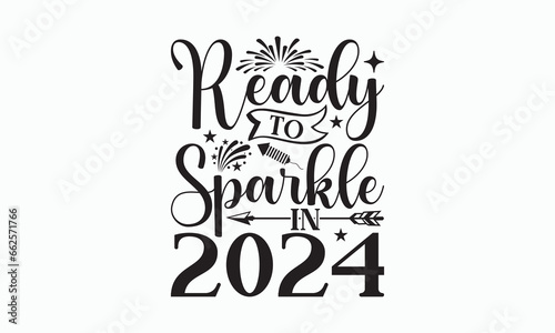 Ready To Sparkle In 2024 - Happy New Year T-shirt Design, Handmade calligraphy vector illustration, Isolated on white background, Vector EPS Editable Files, For prints on bags, posters and cards.