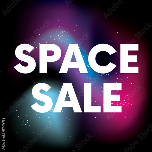 Ready-made design of a poster, flyer, banner or print for clothes "Space sale". Space, galaxy and stars. Vector illustration.