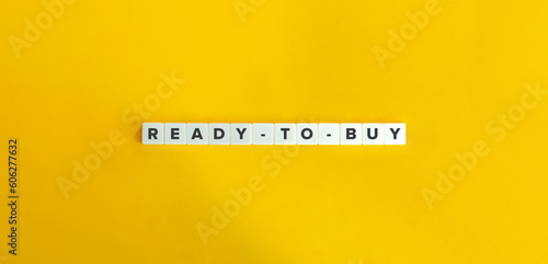 Ready-to-buy Phrase on Block Letter Tiles on Yellow Background. Minimal Aesthetics.