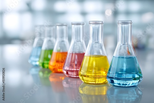 Reagenzgläser mit bunten Flüssigkeiten in moderner Laborumgebung