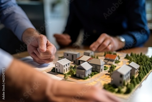 Real estate agent with client or architect team, concept house model (Ai generated)