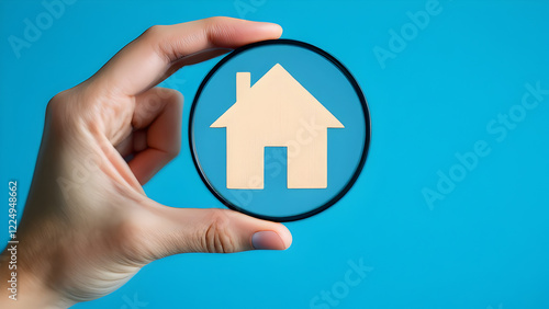 Real Estate Concept, Property Search and looking One Unique House from magnifying glass.