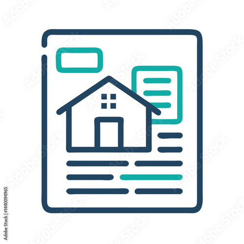 Real Estate Document: House Information Icon on Paper, Blue and Teal